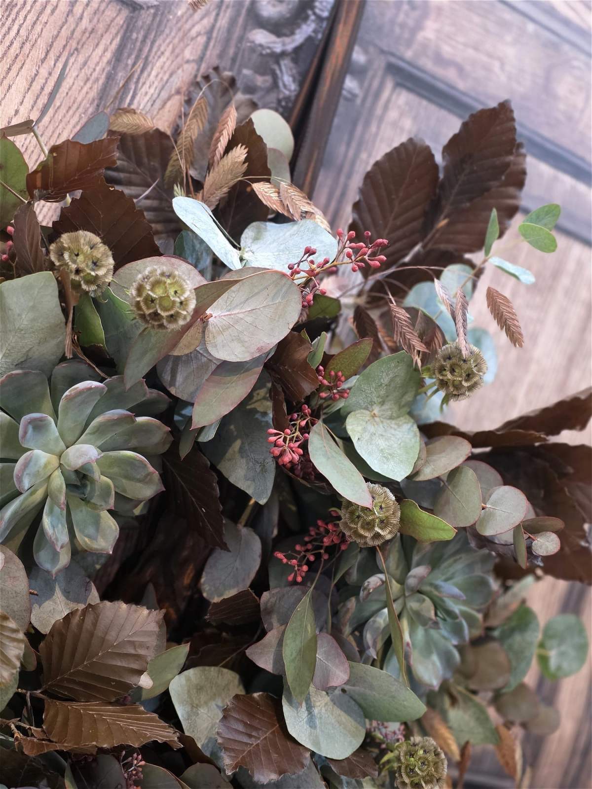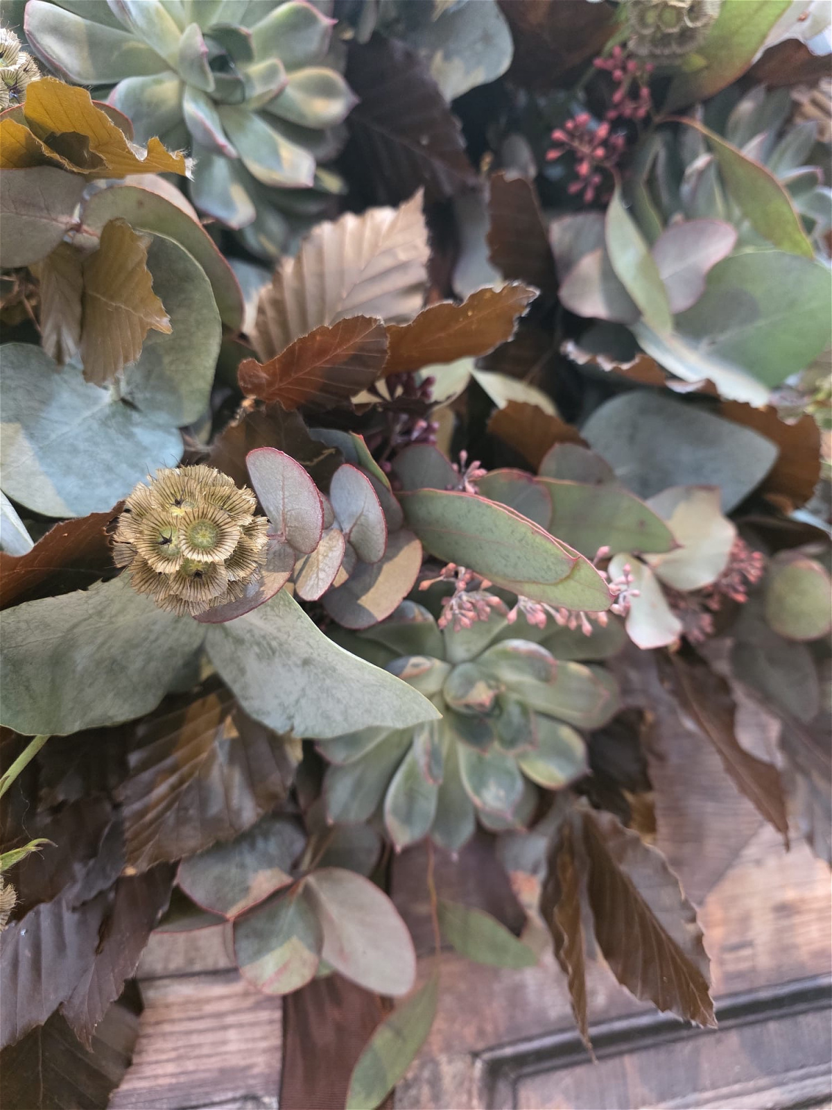Bring the beauty of the harvest season to your front door with our Autumn Bramble wreath. Inspired by hedgerow walks and crisp autumn afternoons, this handcrafted piece blends deep russet foliage with soft green succulents, textured seed heads, and delicate touches of wild berries.
